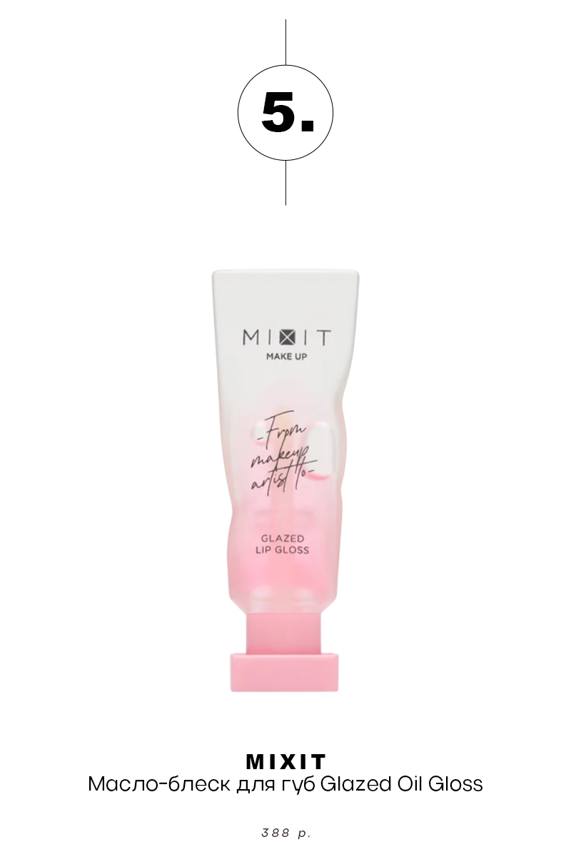 Mixit coloring oil and gout create the same trend effect of glass. Smoothly lies, nourishes and moisturizes. There are three colors on the line: strawberry, peach and powder. The oil is absorbed quickly, does not infect and does not stick.