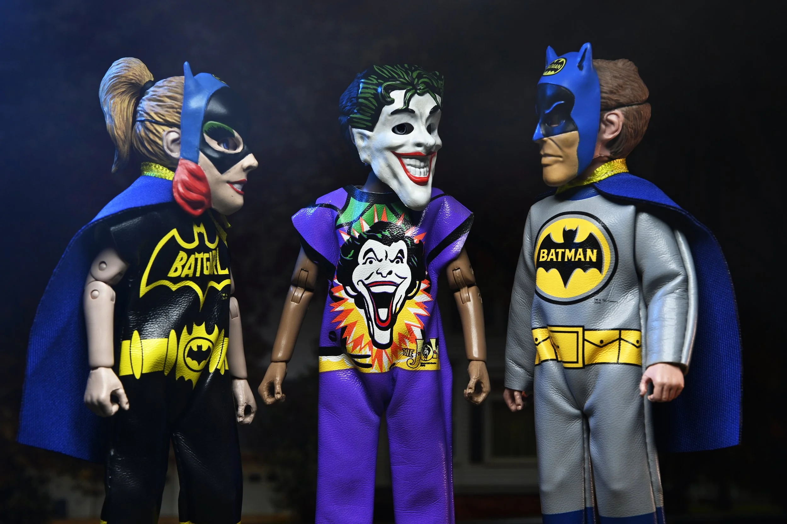 Each figure is packaged separately in a retro-style numbered window box that pays homage to the original costume packaging.