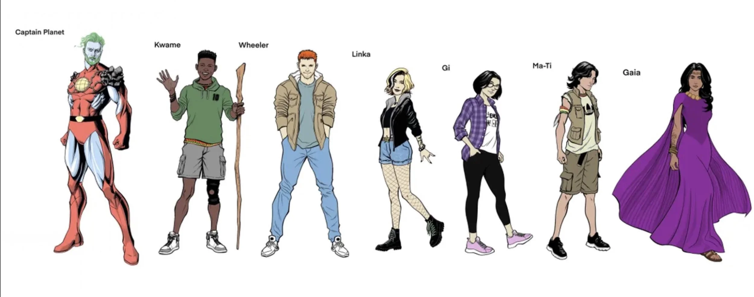 Captain Planet and the Planeteers was a group of teenage heroes from around the world who wielded elemental powers, summoning their champion Captain Planet to help them fight pollution and climate change.