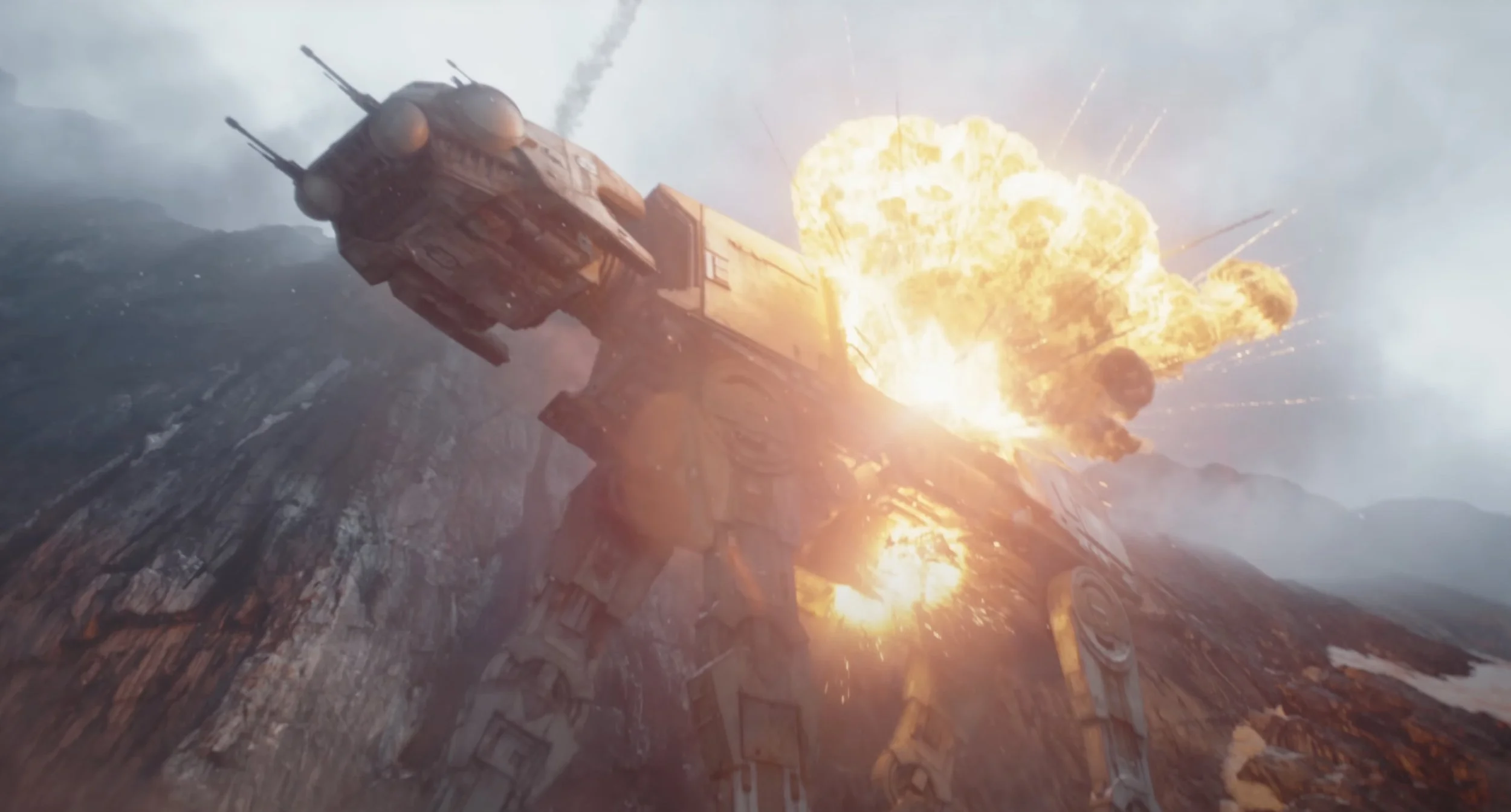 Later, we saw an AT-AT walking through a snowy battlefield before she explodes. The movie of the celebrations confirmed that I send this walking habit, in a real mandalorian way. It is one of the most amazing moments shown so far.