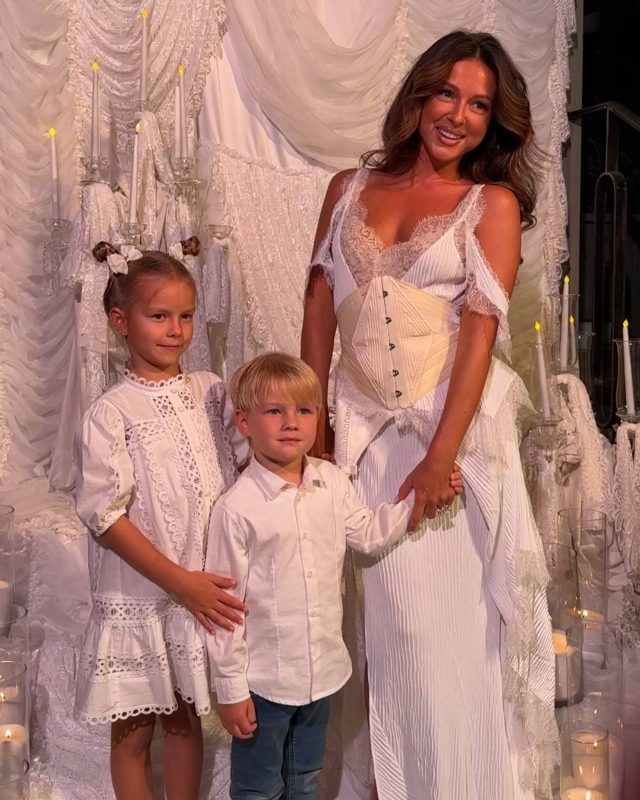 The first guests of the evening identified the tone of the whole holiday – these were the parents of the singer Vladimir and Irina Shahochkin, who came out of the elegant clothes that were completely consistent with the declared subject. The main star of the evening was, of course, a birthday girl. The singer appeared in a luxurious outfit in front of the photographers – not one – on the way of his children: his daughter Simba and the last suffron.