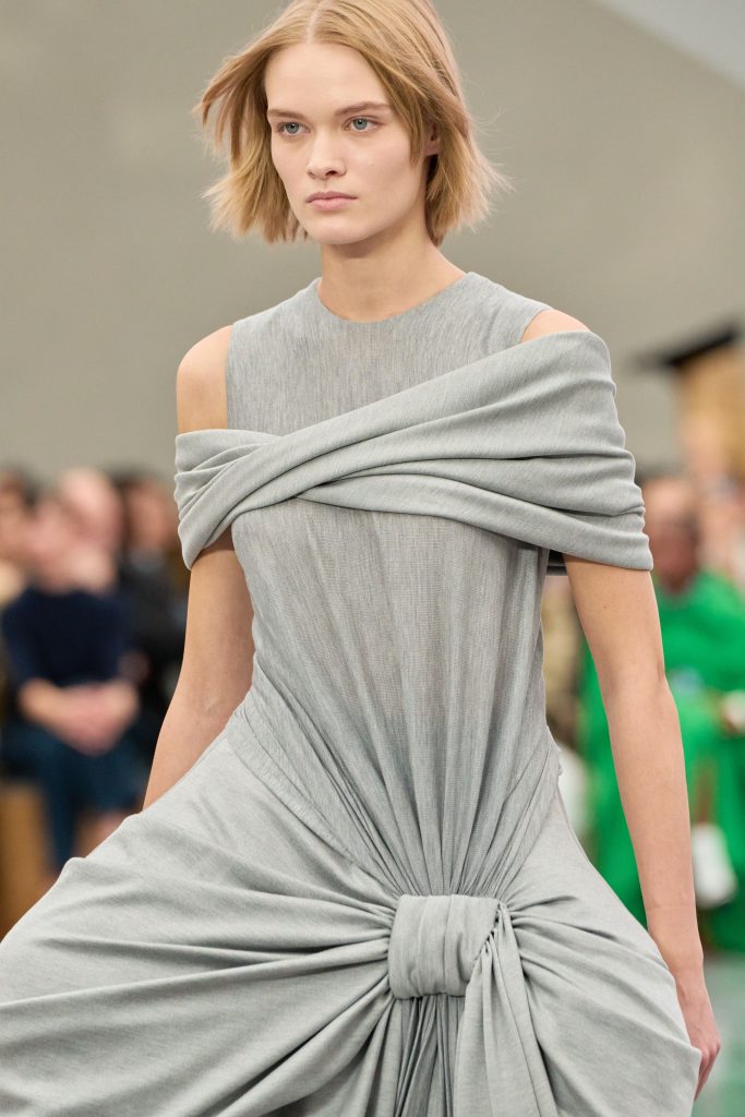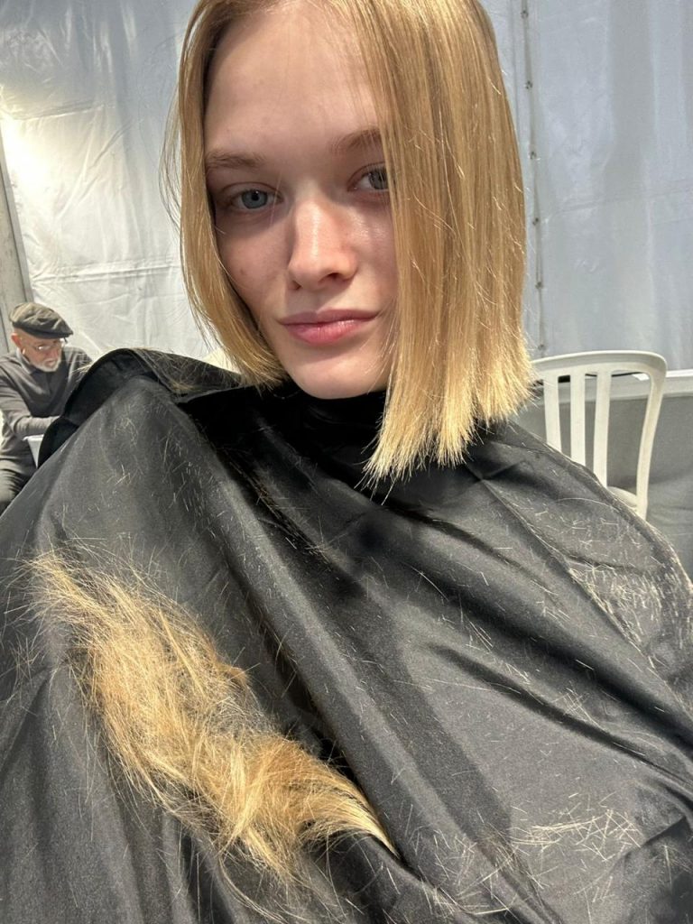 Jonathan went out and was also the Russian model Dasha Kazakova from the Avant Models Agency. The girl passed the podium in a gray dress with a giant bow and shoe in a cage. However, attention was drawn not only by the image itself, but also by Dasha’s new short haircut, which Dior stylists made just before the show.