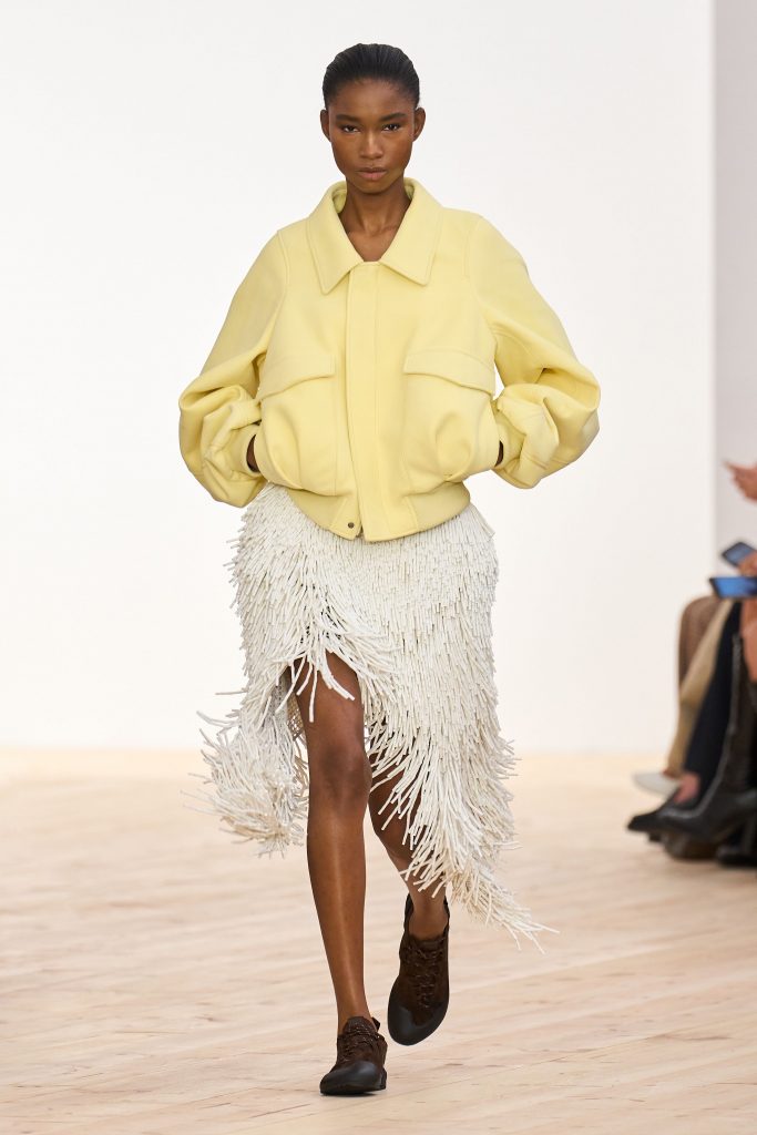 Another important place in the list of trends for the third year in a row is a fringe. Alaïa is fond of designer teams from Balmain, Chanel, Dior, Loewe, Gabriela Hearst, Lanvin and many other brands. By the way, the interpretation of the trend is different for everyone, but we were most impressed by Loewe’s “drilling” skirts by Jack McCallou and Lazaro Ernandes.