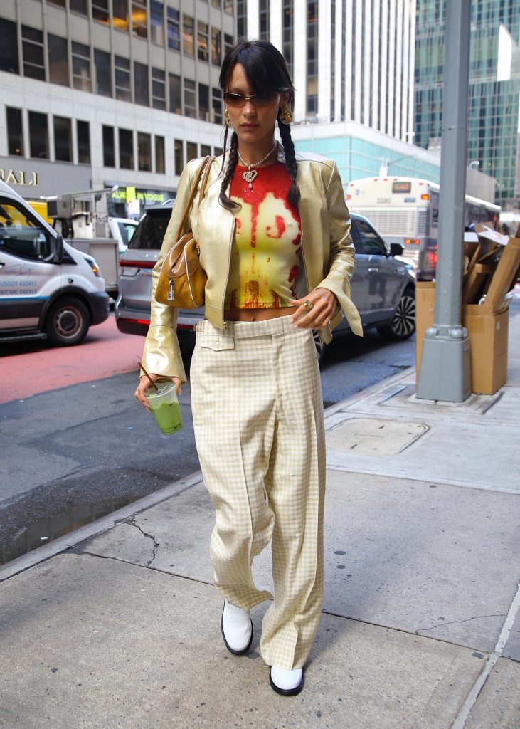 At that time, her wardrobe included silhouette tops, leather jackets and low-waisted trousers, combined with large earrings and tight glasses. In street style, Bella struck a balance between sportiness and provocative glamor: She could wear tight corsets, tracksuit pants, and an ultra-short skirt with a hood. This was the period when Bella transitioned from being “Gigi’s sister” to an independent fashion figure. He’s learned to combine commercially appealing visuals with personal prowess, turning each of his appearances into news feeds for glossy media.