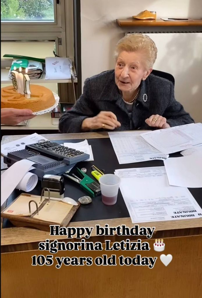 A cake with candles in the shape of the number 105 was brought directly to the birthday girl’s table. The video was titled: “Join us in our birthday wishes to our boss Letizia Galli as she turns 105 (and she’s not feeling it).” A few days later, the company published another post stating that the celebration video had been watched 1.5 million times by users around the world.