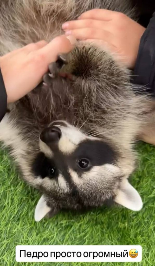 In photos published on social networks, Oksana caresses Pedro the raccoon, and he bites her a little. Pedro became the first resident of the farm, which Dzhigan and Oksana had been building for several months. The girl also has a deer, Roshi.