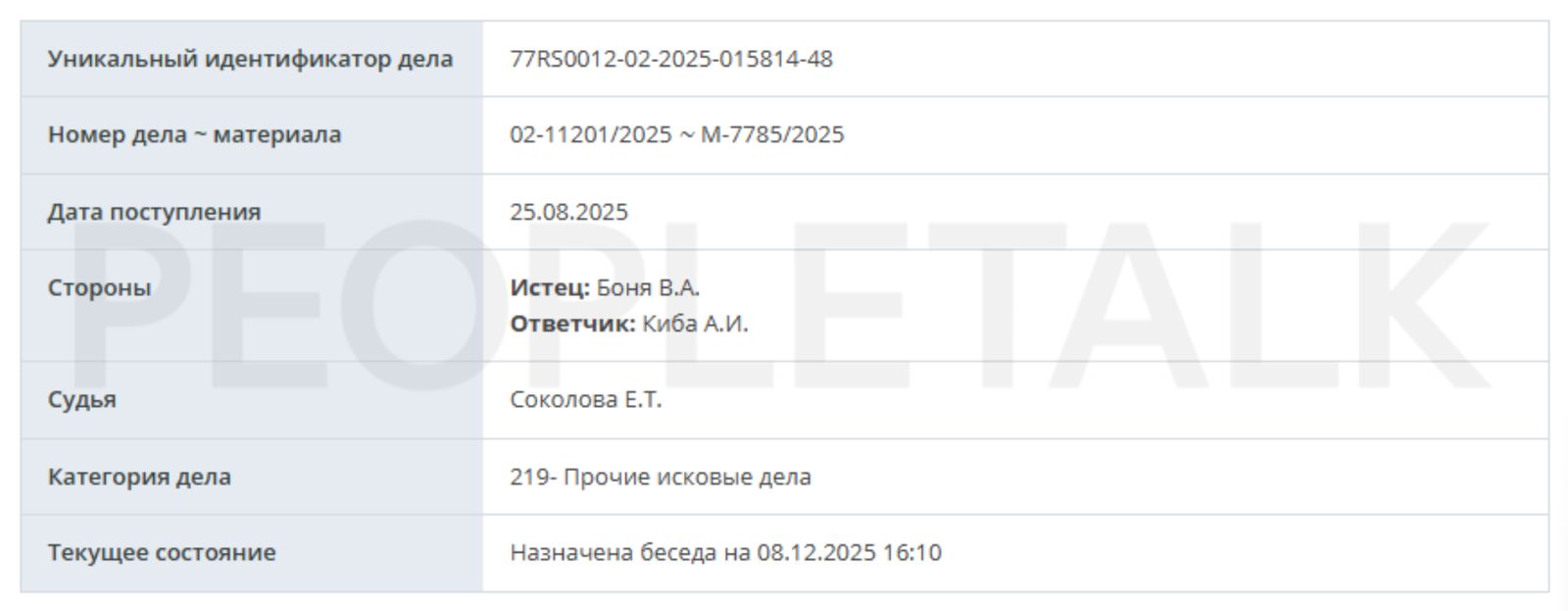 However, we decided to check the files of Moscow courts and found out that Bonya filed a lawsuit against Kiba on August 25. The TV presenter’s application has been registered and is being prepared for consideration. The first meeting regarding the case is planned to be held on December 8.