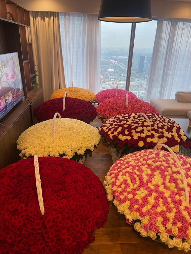 Oksana Samoilova posted a photo on her Telegram channel showing a basket of eight luxurious roses. The influencer captioned the photo, implying that the sender was not known to her: “This happened today this morning I don’t know who gave it but I love this basic minimum.”
