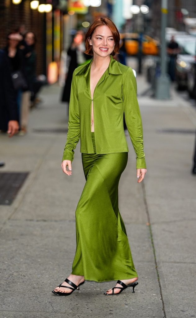 Green seems to be back on top, and Emma Stone knows it. The actress appeared at the press day for Yorgos Lanthimos’s “Bugonia” in Donna Karan’s archive look from spring-summer 1996; It’s the same look Gwyneth Paltrow once wore in the movie “Great Expectations.” Stone almost completely replicated Gwyneth’s iconic look: a single-button silk blouse, a flowy skirt, and the same Manolo Blahnik sandals (or as close as possible). The only thing missing is a large black alligator bag.