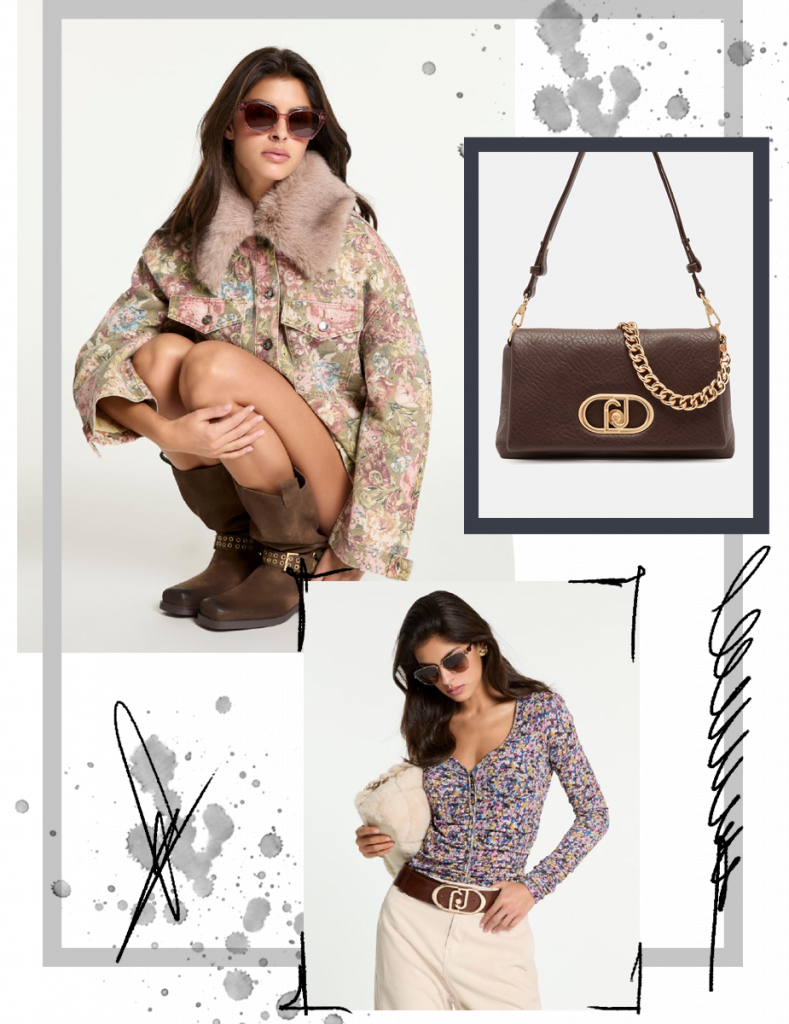 The new Lui Jo collection combines femininity with urban energy: vintage-effect denim, polymer-coated jackets, sparkling details and tailored silhouettes. The color palette consists of muted gray and chocolate tones with accents of mustard and lilac, and the prints feature the usual play of contrasts for Liu Jo: flowers, plaids, animal motifs. The main hero of the season is denim. There are dozens of varieties: from wide trousers to maxi bombers that match perfectly with a lace skirt. The finishing touch is the updated LaPuffy bag in new shapes and sizes.