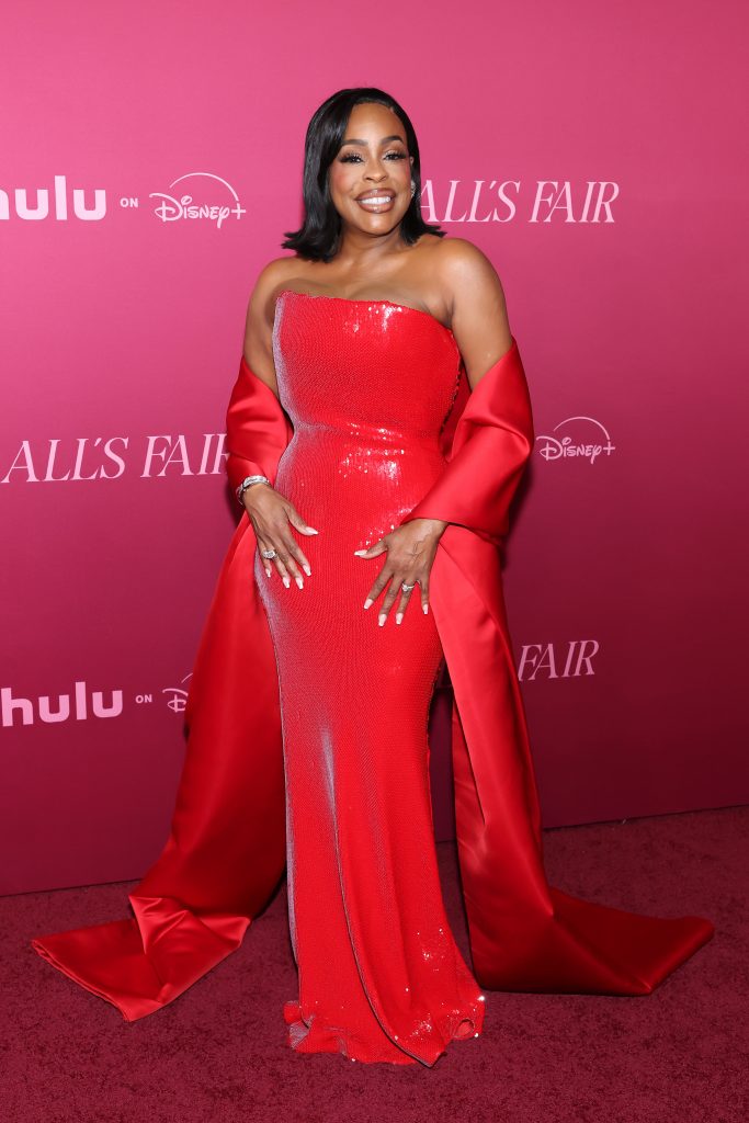 Niecy Nash-Betts keeps up with her colleagues on the carpet, too. The first look is a red-lined MSO Lagos wine dress that looks like it’s been turned inside out. The second option is all black: a mermaid dress made of shiny leather, long gloves and a gorgeous ironic hat. And finally, the last image is a red Sergio Hudson dress, like a molten ruby, which perfectly emphasizes the actress’s figure. Niecy Nash-Betts was clearly responsible for the group’s effortless appeal.