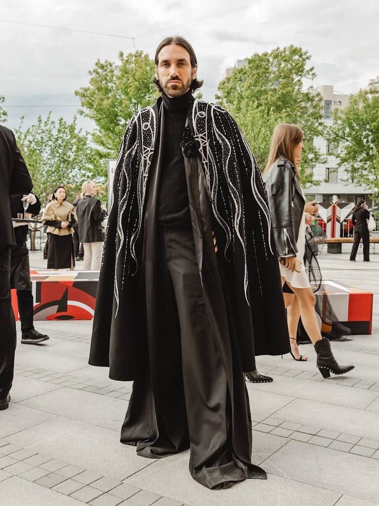 I always try to add non-standard items to my collections, items that people may not immediately understand. It’s kind of like my fetish: making something completely pointless, because men’s clothing is often too functional and rational. But I’m interested in creating something that has no practical purpose. This is exactly how a cashmere cape embroidered entirely with glass beads and stones was created. It took 40 hours of embroidery and several months to create. It was deliberately theatrical, almost antique; It was the kind you would only wear when getting out of the car. Later, the cloak ended up in an exhibition at the Moscow Historical Museum, where it was featured in the same display case as 18th-century evening dresses.