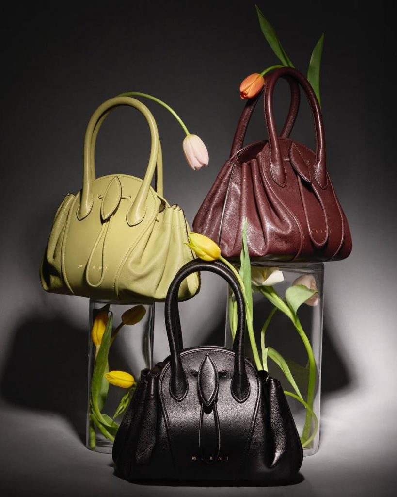 Marni does not lag behind and offers to reconnect with nature instead of classic silhouettes. New Marni Tulipea was inspired by the tulip bud, the symbol of elegance and eternal love. The bag has already found its way into the hands of the most stylish girls, including Dior’s new ambassador Mia Goth, as well as actresses Amanda Seyfried and Katie Holmes.