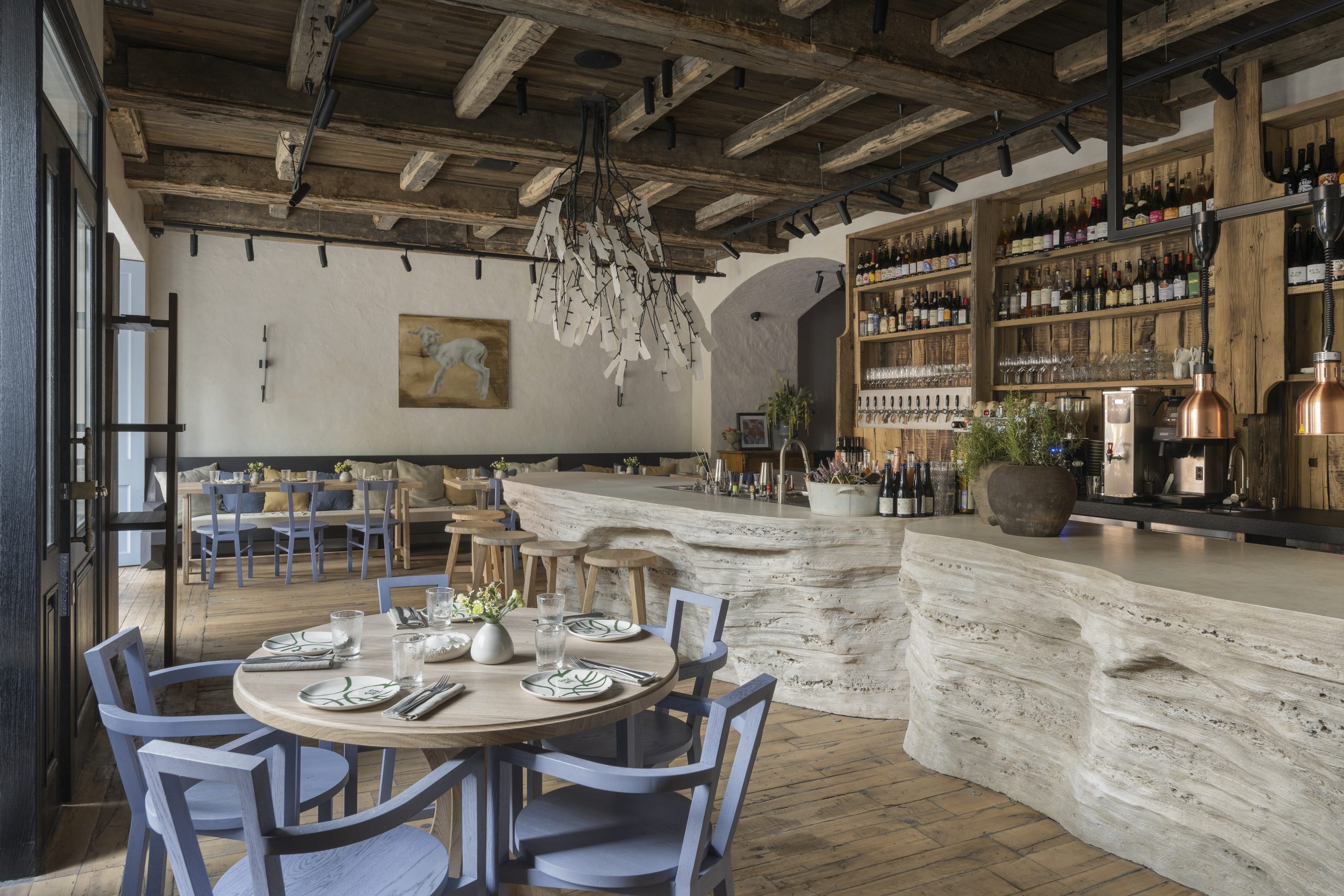An elegant restaurant in the center of Moscow with a Normandy-style interior: old wood, a stone bar counter, a luxurious chandelier, paintings and many vintage items from European flea markets. Here cider is served with no less respect than Burgundy wines. Everything is serious at Pomme Verte: a refrigerated cider room, a cider map and a vintage press.