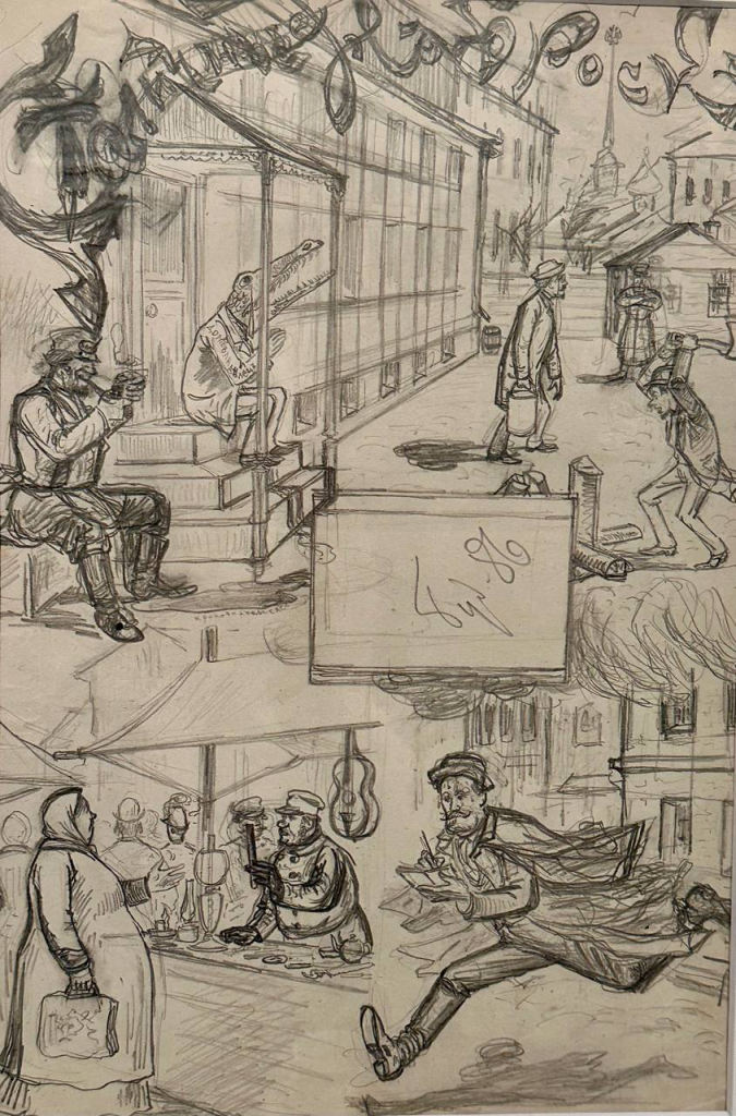 The picture of city life would be absolutely incomplete without Mikhail Chemodanov’s caricatures; It is his works that provide the necessary dynamics, compatible with Vladimir Gilyarovsky’s definition of the city. The artist’s humorous sketches reflect the real life of Moscow with its joys and pains.